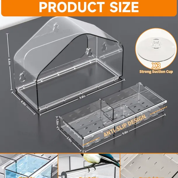 Transparent Acrylic Bird Feeder – Wall-Mounted, Suction Cup Design (Clear) – Easy to Clean & Weatherproof – Ideal for Elderly & Kids