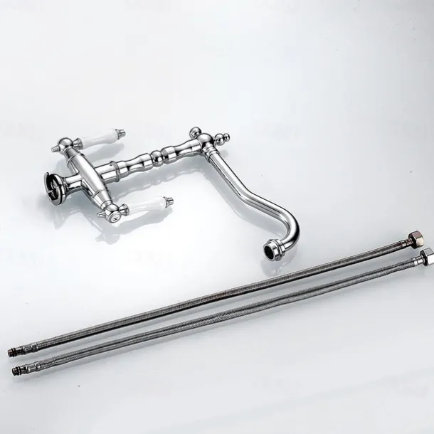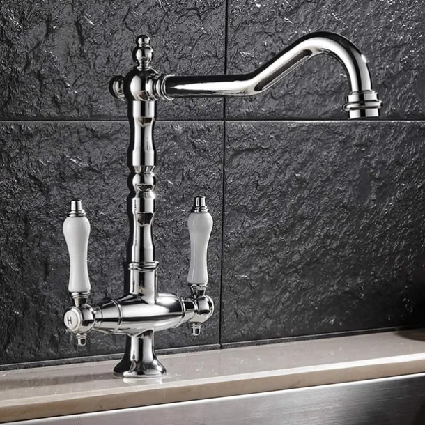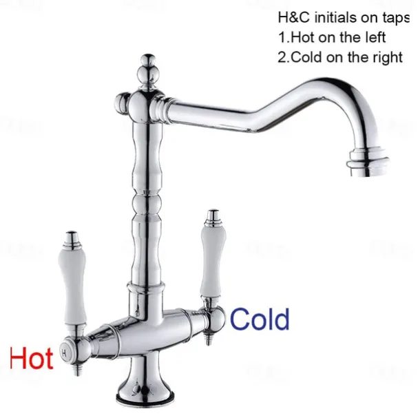 【High Quality】: Made from solid brass material body, safety and durable, surface chrome treatment of the kitchen tap-nice, glossy and good quality, passed the salt spray test, durable and colorfast, separate controls for hot and cold water.
