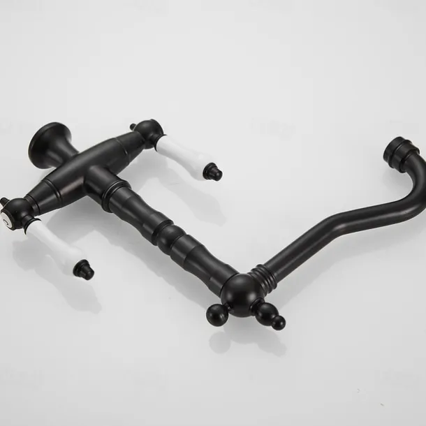 【Twin Ceramic Handle and Come with Hose】: Ergonomic twin levers design, all mounting hardware and hot/cold flexible hoses are included, easy to self-installing.