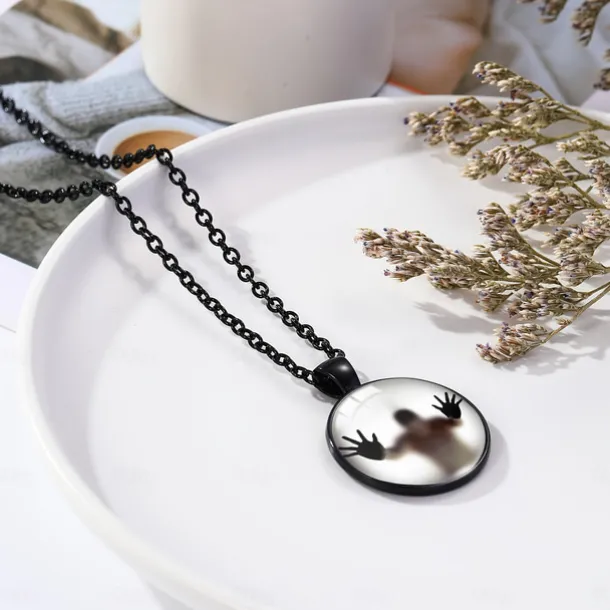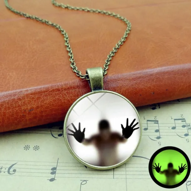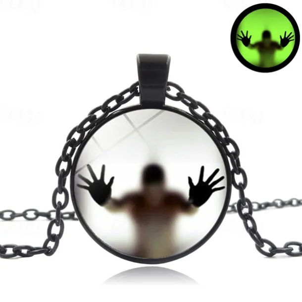 Unique Glass Pendant Necklace – Luminous Silhouette, Glowing Green, Metallic Chain for Night Events