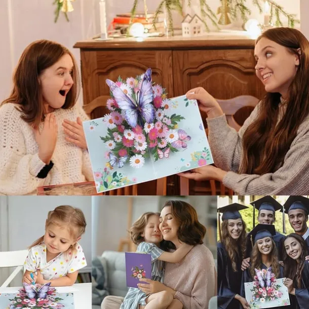Vibrant 3D Butterfly & Daisy Pop-Up Greeting Card Best Gift for Mom, Mother’s Day Flower Bouquet Card, Teacher Appreciation, Birthday, Thank You Greeting