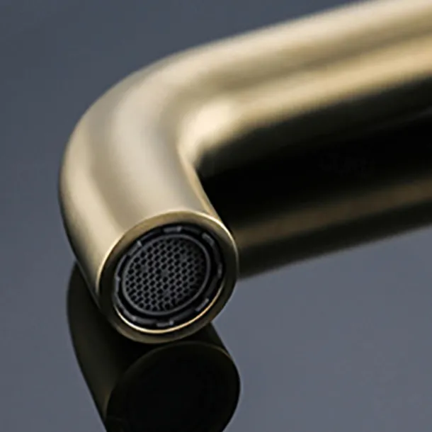 【360 Swivel Spout】360 degree swivel faucet with full range can meet your daily cleaning. The wall mount brushed gold bathroom faucet makes water better access to the basin sink. Wall mount bathroom sink faucet can fit most of places, such as : bathtub, bathroom sink, hotel sink, lavatory sink, utility sinks and so on.