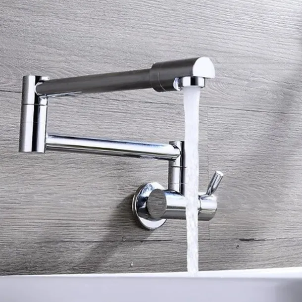 Wall Mounted Kitchen Faucet,Pot Filler Type Silvery Single Handle One Hole Contemporary Kitchen Taps with Cold Water Only