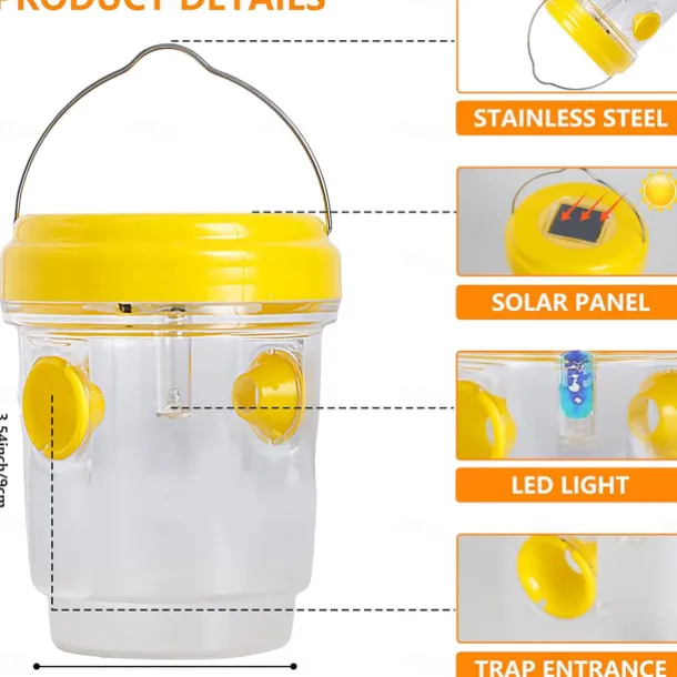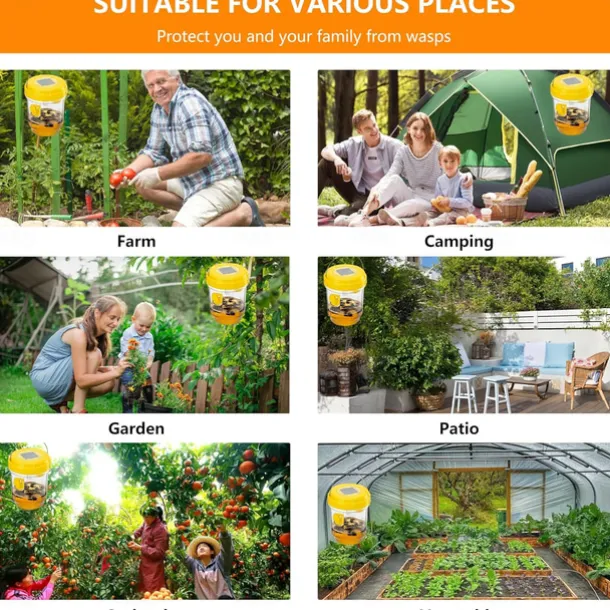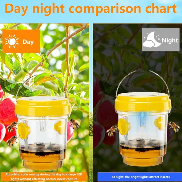 Wasp Traps Outdoor Hanging, Solar Bee Trap for Outside, Hornet Traps, Bee Wasp Catcher Outside Garden