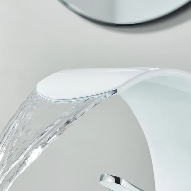 - Waterfall Spout: Designed with a 5.3″ tall spout, this bathroom sink faucet delivers visual-pleasing and gentle waterfall water flow, helping create a serene and stylish bathroom environment.