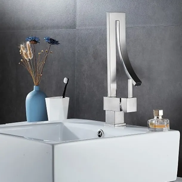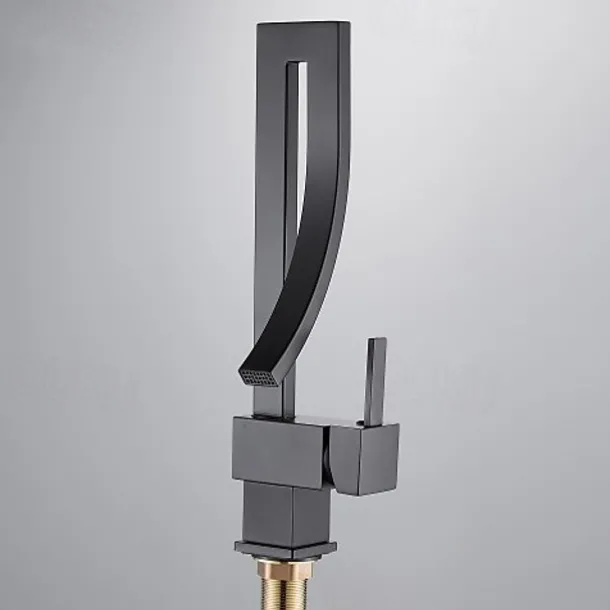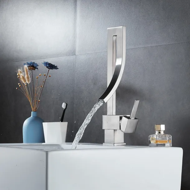 With a creative and fashionable design, this single-hole deck-mounted waterfall spout bathroom sink faucet brings an angular, modern and bold look to your bathroom. The single handle offers easy operation on controlling the water temperature and flow. It is absolutely stunning and designed to attract lots of attention thanks to its unique shape and waterfall spout. Turn water on, it will send a sheet of laminar water and make a waterfall statement.