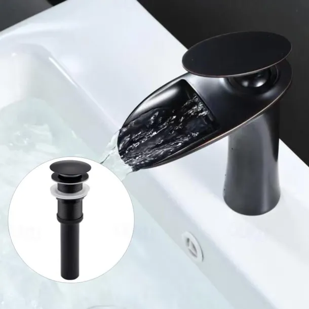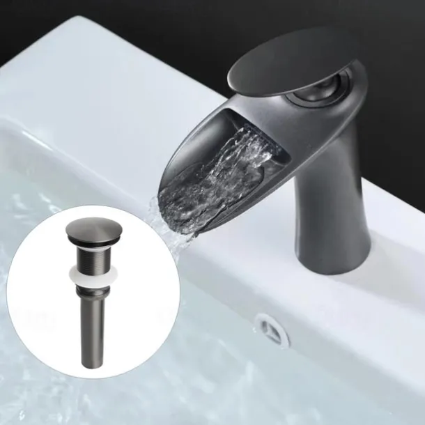Waterfall Spout: Designed with a 4.5″ tall spout, this bathroom sink faucet delivers visual-pleasing and gentle waterfall water flow, helping create a serene and stylish bathroom environment.