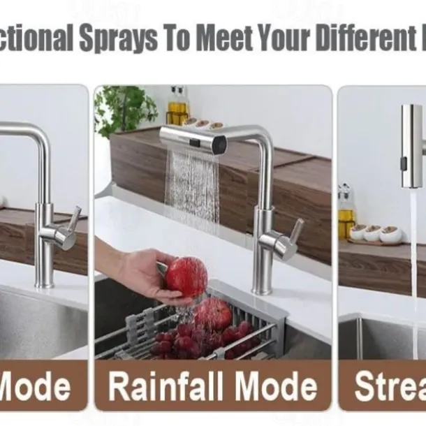 Waterfall Kitchen Faucet Sprayer, Stainless Steel 360 Rotatable, Anti-Splash Design, Durable and Easy to Clean, Universal Filter Extension