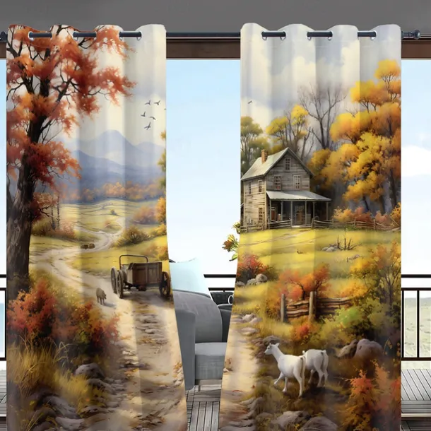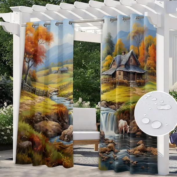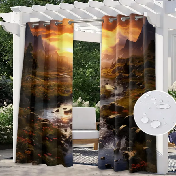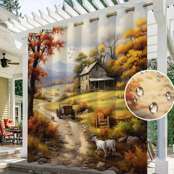 Waterproof Outdoor Curtain Privacy, Landscape Sliding Patio Curtain Drapes, Pergola Curtains Grommet For Gazebo, Balcony, Porch, Party