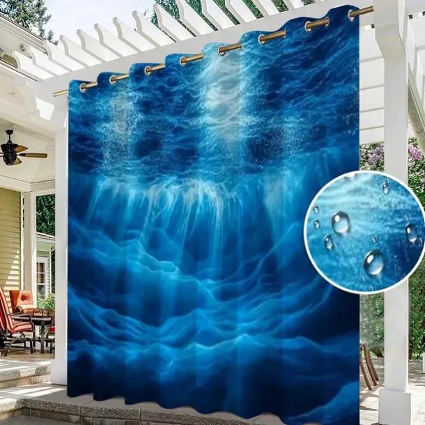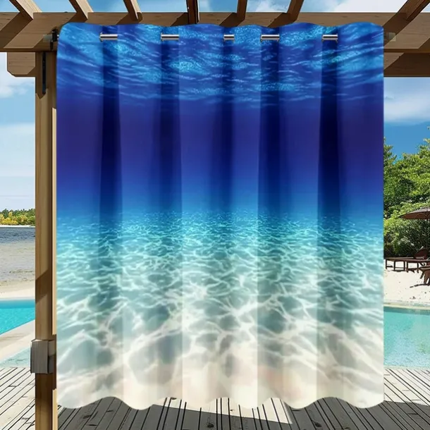 Waterproof Outdoor Curtain Privacy, Sliding Patio Curtain Drapes, Pergola Curtains Grommet 3D Ocean Landscape For Gazebo, Balcony, Porch, Party, 1 Panel