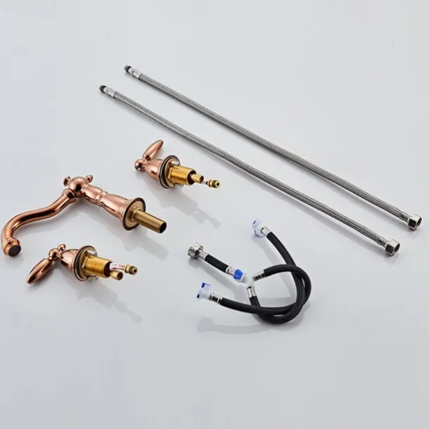 【Classic and Elegant Design】- Two handle bathroom sink faucet, double handle for effortless flow and water temperature control; The design of the red and blue rubber ring makes it easier to distinguish between cold and hot water; Gorgeous brushed/painted/electroplated finish will instantly enhance the appearance of any bathroom sink faucet and complements most decorating styles.