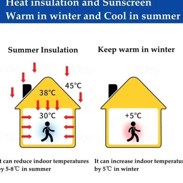 Effective Thermal Insulation: Crafted from a three-layer structure featuring double-sided aluminum foil and pearl cotton, this window film effectively blocks heat transfer, keeping your space cooler in summer and warmer in winter for year-round comfort.