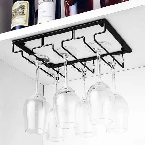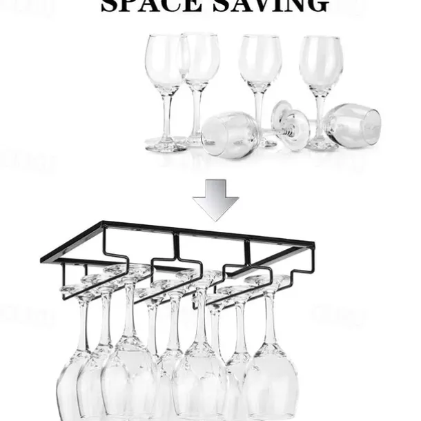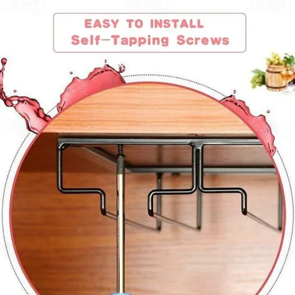 1. Easy installation: No drilling required! Installing this wine glass holder is a breeze. Simply use the provided screws and a screwdriver to attach it to the wood of your cabinet. Easy installation in just a few minutes.