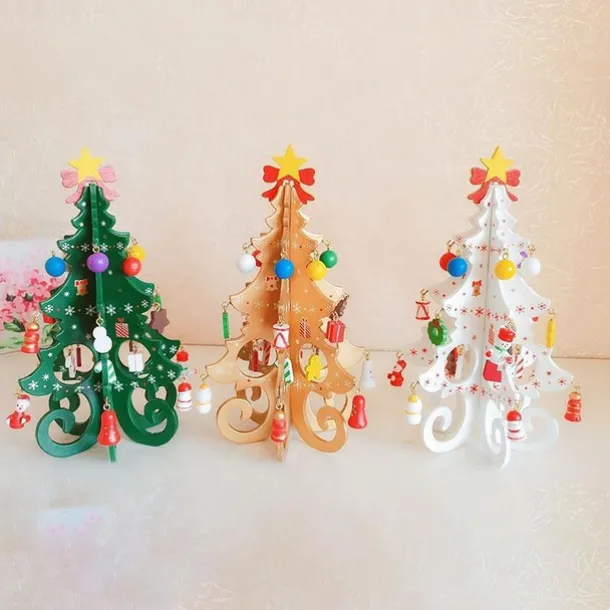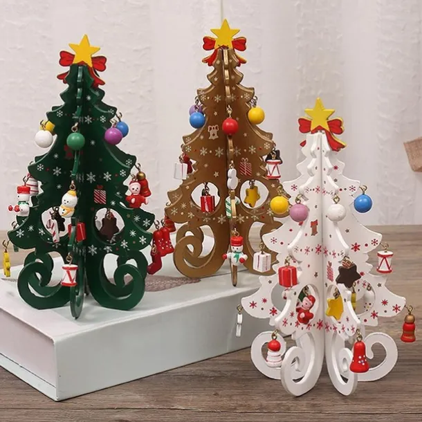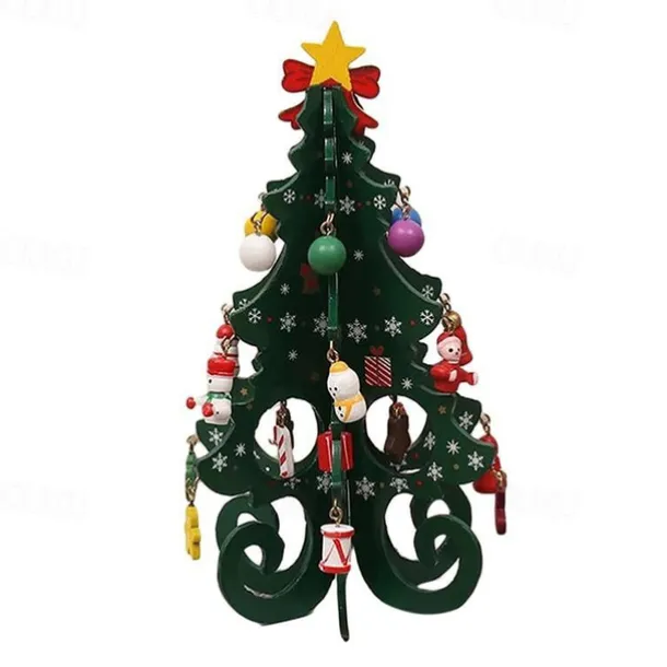 Wooden Christmas Tree Christmas Gift Six-Piece Tree With A Set Of Small Pendants Christmas Ornaments Gift Decorations